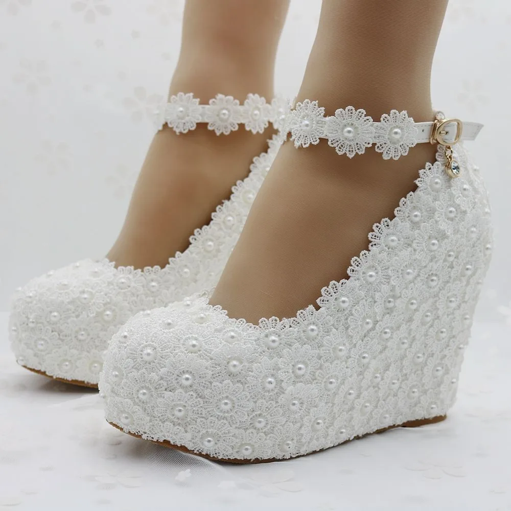 Lace Bridal Wedge Heel Wedding Shoes 3.5 inch by ...