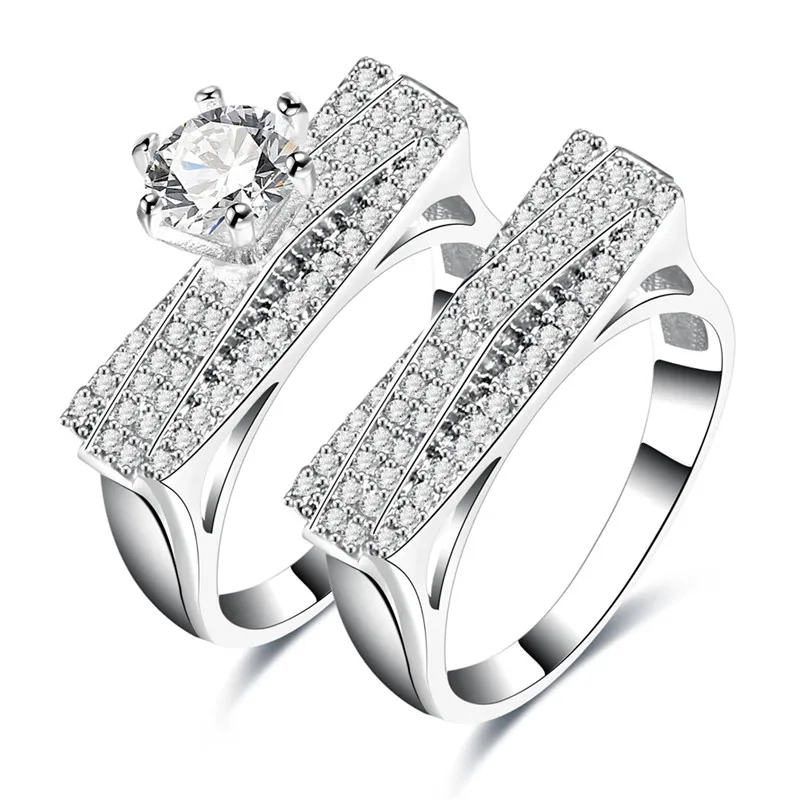 Luxury Pure Silver Wedding Rings Brand Jewelry SONA Stone ...
