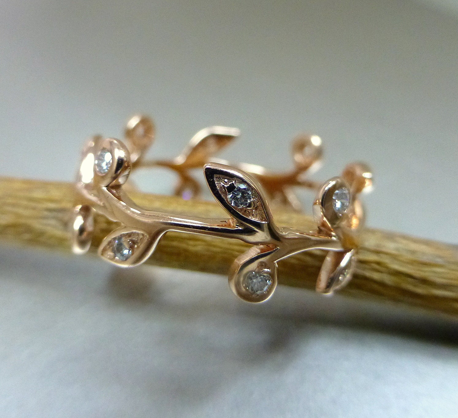 Vine and Leaf Engagement Ring or Wedding Band in 14k Rose ...
